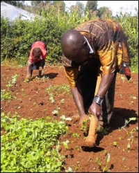 I found Joseph and his wife Mary Nyaboke tending vegetables in their small shamba, or homestead.