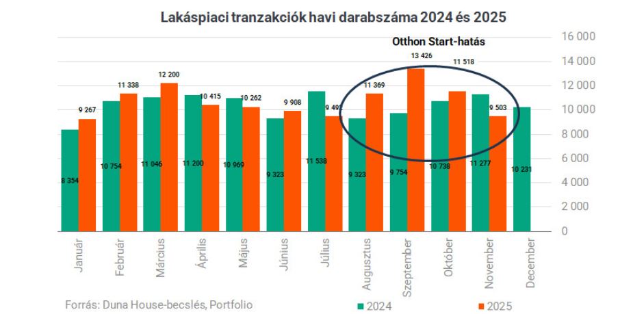 Összességében azonban az Otthon Start által érintett négy hónapban, szeptembertől-novemberig között a tavaly ilyenkorihoz képest 4724-gyel több lakóingatlant értékesítettek, ami 11,5%-os növekedést jelent éves szinten, tehát az állami program megnövelte a tranzakciószámot.