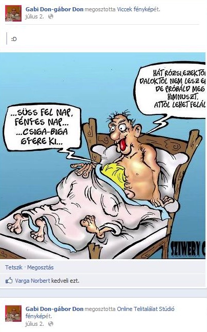 A fölöttébb humoros rajz csonkítatlan szöveggel, nehogy azt higgye valaki, esetleg valamiféle cigány vagy éppen a zsidó himnuszról van szó: