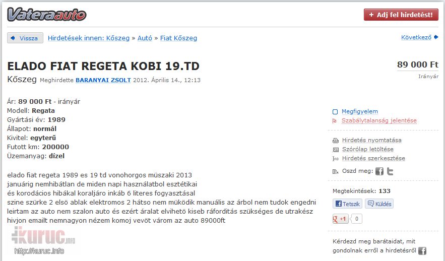 Ennek a nemes kezdeményezésnek az egyik vezetője - konkrétan "főtörzszászlósa" -, Baranyai Zsolt, aki nem mellesleg a kőszegi Cigány Kisebbségi Önkormányzat tagja, eladásra kínálja hőn szeretett autóját.