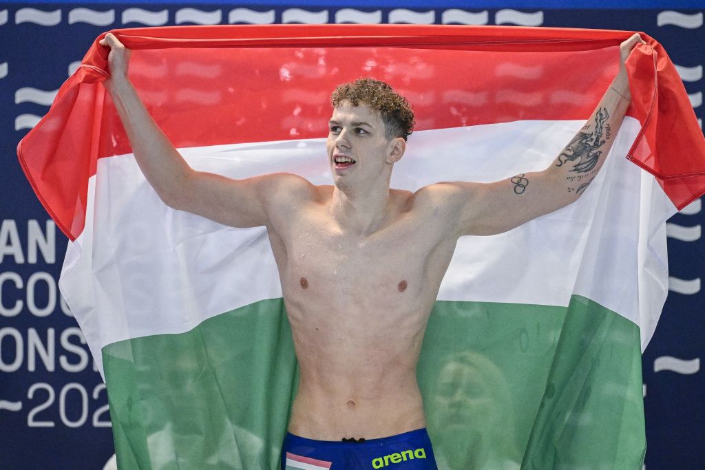 "Azt azért tegyük hozzá, hogy rövidpályán. Remélhetőleg egyszer ez majd nagymedencében is meg fog történni. Így hogy vb-t, Eb-t és világkupát is nyertem, kijelentem, hogy ez a kedvenc számom" - tette hozzá.