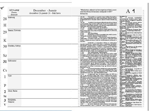 A szocializmusban nevelkedett gyermekként elég szelektált és elferdített ismeretek jutottak számomra osztályrészül nemzetünk történelméből. Többek között ezért is használom nagy szeretettel ezt a határidőnaplót, hiszen - az egyéb olvasmányok mellett - a benne szereplő ismeretekkel, adatokkal minden nap és minden órában lehetőségem van ez irányú hiányosságaimat pótolni, és a hazám iránti pozitív érzéseimet tovább erősíteni. D. Zsolt, Budapest”