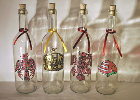 Kézzel festett, egyedi készítésű üvegek.