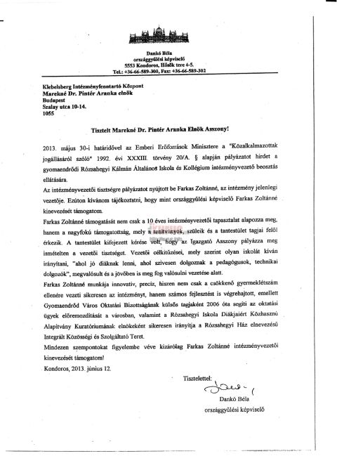 S itt jön be a történetbe Dankó Béla, a választókerület fideszes országgyűlési képviselője, Kondoros polgármestere, aki valamiféle háttéralkut kötve a baloldallal, szintén a régi jó elvtársnő, Farkas Zoltánné újraválasztása mellett tette le a voksát, sőt ígéretet tett, hogy a megfelelő döntési szinteken is segít.