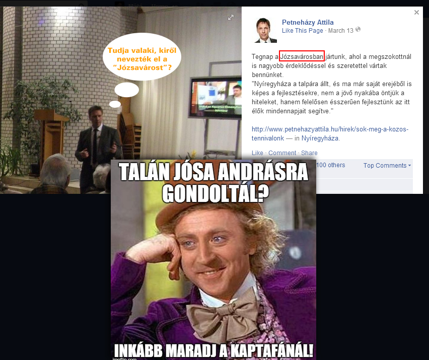 Megdöbbenve tapasztaltam a Fidesz nyíregyházi képviselőjelöltjének Facebook-oldalán, hogy képviselőjelöltként és önkormányzati képviselőként mennyire nincs tisztában azzal, hogy városunk egyik legnagyobb lakótelepének nevét hogy kell írni. Valószínűleg így azzal sincs tisztában, hogy honnan ered.