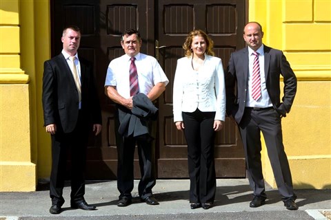 ![]() Óvári Márton, Bognár Ferencné Anikó, Ferenczi Gábor, Vona Gábor és Kozma György Devecserben (Fotó: Penk Tímea) |