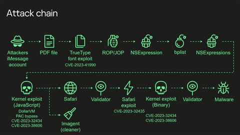 A telefonok legtöbbjét iMessage üzeneteken keresztül fertőzték meg, több különböző sebezhetőség kihasználásával – így az áldozatok védekezni sem tudtak ellene. Ugyan a támadókód az iPhone-ok újraindulását nem élte túl, viszont a hackerek akkor ha erre a ritka eseményre sort kerített a felhasználó, egyszerűen egy újabb iMessage üzenettel észrevétlenül vissza tudták ismét fertőzni a kiszemelt almás telefonokat.