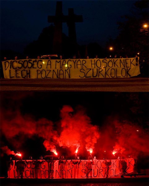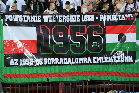 A varsóiak hétfőn a Pogon Szczecin vendégeként játszott bajnoki mérkőzésükön raktak ki transzparenst 1956-ra emlékezve, míg a poznaniak a városban lévő '56-os emlékmű előtt gyűltek össze, ahol görögtüzeket gyújtottak a szabadságharcos hősök emlékére.