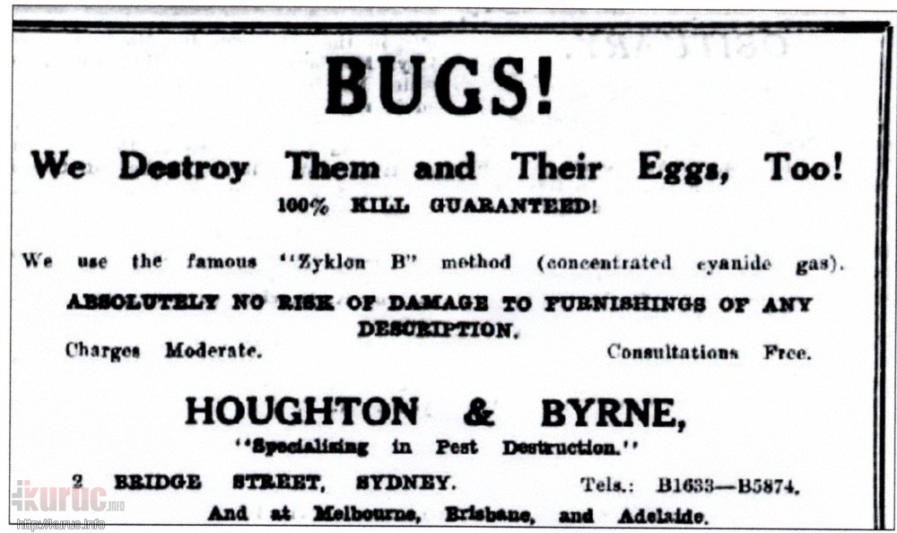 Előbb egy hirdetés az ausztrál The Catholic Press című keresztény lap 1932. április 14-én megjelent számának 5. oldaláról - akkoriban a Zyklon B még csak ilyen szövegkörnyezetben fordult elő... De aztán jöttek Ilonka néniék, és átírták a történelmet.