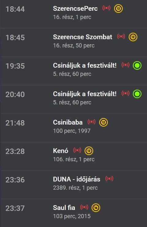 A Vásárhelyi Mária-félék ezt még el is hinnék, de rutinos olvasóink pontosan tudják, hogy a Zsidesz nem tagadja meg valódi arcát, ahogy a kezükben lévő "közszolgálati" média sem. A Duna igazán keresztényi nagyszombat esti műsorterve alapján, ahogy a képernyőmentésünkön is látszik, a legbiblikusabban mind közül a nap legvégén kezdődő Saul fiai című Oscar-díjas holodráma hangzik.