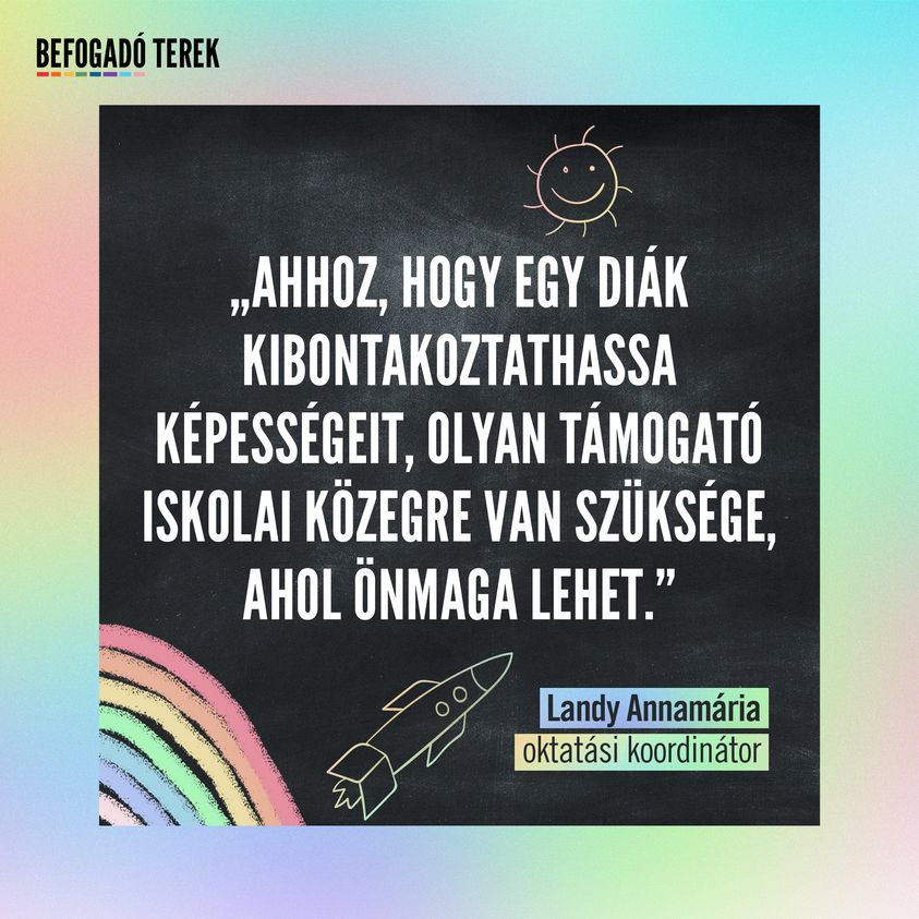 A Befogadó Terek nevű projekt így "biztonságos, befogadó" közeget teremt majd az iskolákból az LMBTQI-emberek számára is, hiszen egyértelmű, hogy manapság ez a legnagyobb baj a hazai oktatásban.