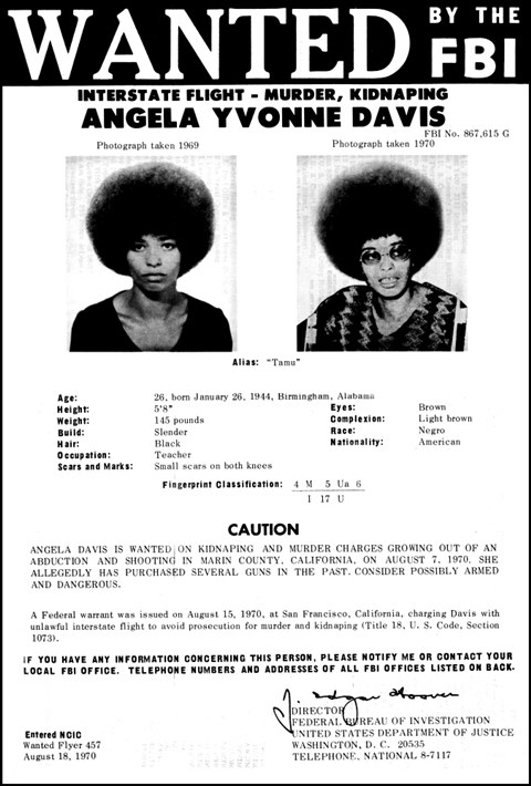 ![]() Azért az ilyet jó érzés látni: Angela Davist körözi az FBI gyilkosság és emberrablás miatt a tárgyalótermes incidens után. Felhívnám a figyelmet a "race: negro" kifejezésre (forrás: Wikipédia) |