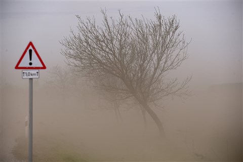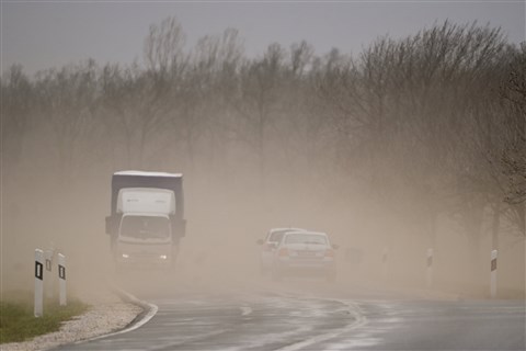 Porviharban közlekedő járművek a 35-ös főúton Hajdúböszörmény térségében 2023. április 4-én