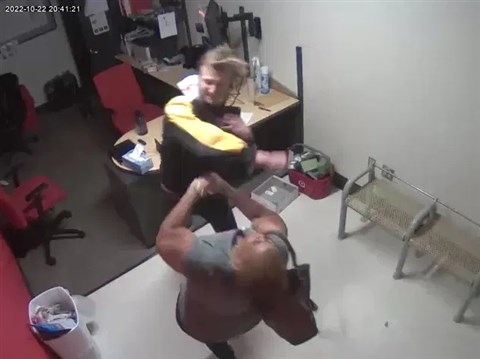 A férfi egészen a biztonsági irodáig hátrált, de a nő oda is követte. Mikor Ivery már egészen sarokba szorította az őrt,