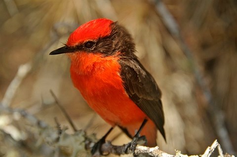Rekordszámú fiókája született a kihalás fenyegette, Darwin légykapójaként emlegett élénkpiros királygépbicsfélének a galápagosi Santa Cruz-szigeten, ahol már csak 15 felnőtt pár fészkel.