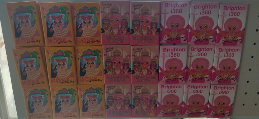 A másodikon egy „Pride busz” szerepel Brightonban, a harmadikon pedig hűtőmágnes választék ugyanitt (Sue Veneer egy brit drag queen, bizonyára mindenki „égett a vágytól”, hogy ilyen hűtőmágnest vehessen).