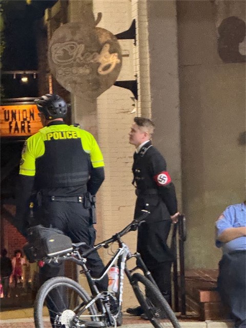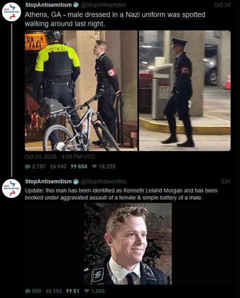 Kenneth Morgan pórul járt támadója így meséli el a történteket: „Miután megittam egy sört, 10 percig kint ültem a bár előtt a barátaimmal, mielőtt a zsidó barátom észrevette a férfit teljes náci egyenruhában, horogkereszttel ellátott piros karszalaggal. Kiabálásba keveredtek, csak ő és két nála kisebb nő. Felálltam és beavatkoztam, a testemet blokádként használva, hogy megakadályozzam, hogy bejöjjön a bárba. Lenyúltam, hogy letépjem a karszalagot, mivel ez az azonosító tényező, amely a katonajelmezt a gyűlölet elfogadhatatlan megnyilvánulásává változtatta.”
