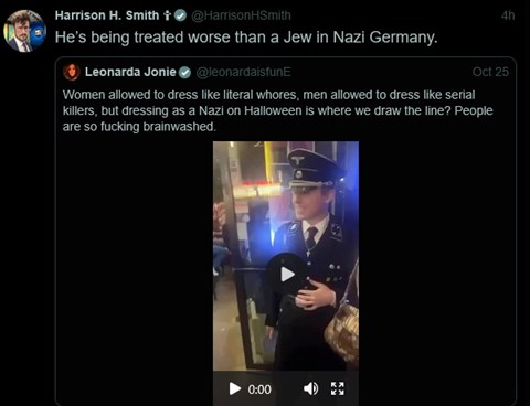 A botrányos eset néhány napja történt a Georgia állambeli Athens belvárosában, ahol egy szimpatikus fiatalember békésen halloweent ünnepelt a kedvenc egyenruhájában, amikor egy antifa fúriahorda szó szerint lerohanta, és durván bántalmazni kezdte, pusztán azért, mert nem egyezett az elképzelésük az éppen aktuális divatirányzatról.