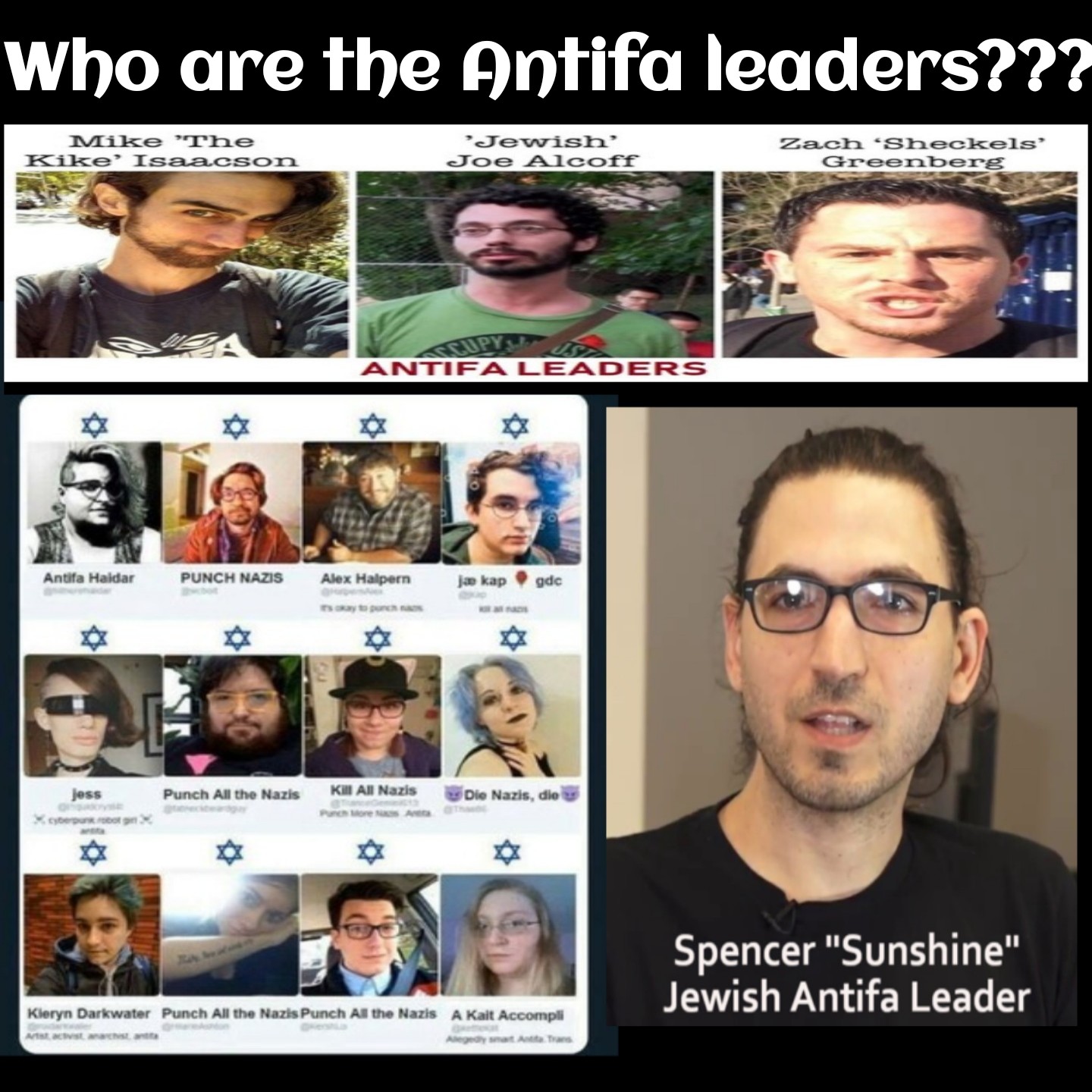 Az antifa tehát távolról sem zsidóellenes, hanem kimondottan zsidóbarát, és mivel a zsidók zsigerileg antifasiszták, törvényszerűen támogatják az antifát, amely nem egy „fasiszta terrorszervezet”, hanem egy bolsevista terrorhálózat.