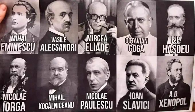 Mihai Eminescu (1850-1889), a román költészet legnagyobb alakja. Vasile Alexcsandri (1821-1890) költő, néprajzkutató, miniszter, a román színjátszás és dráma megalkotója, a „román Victor Hugo”. Mircea Eliade (1907-1986) vallástörténész, filozófus, a 20 század egyik legbefolyásosabb valláskutatója. Octavian Goga (1881-1938) költő, drámaíró, miniszterelnök. B. P. Hasdeu (1838-1907) író, filológus, a román nyelvészet és történelemtudomány egyik klasszisa, Eliade szerint „csodálatos hatalmasságú zseni”. Nicolae Iorga (1871-1940) történész, költő, drámaíró, miniszterelnök (mivel közvetett módon felelősség terhelte Corneliu Zelea Codreanu megölése miatt, bosszúból a vasgárdisták likvidálták). Mihail Kogălniceanu (1817-1891) történész, író, miniszterelnök. Nicolae Paulescu (1869-1931) fiziológus, orvosprofesszor, az inzulin (egyik) felfedezője, a Vasgárda tagja, Codreanu spiritus rectora. Ioan Slavici (1848-1925) regény- és drámaíró, Eminescu legjobb barátja. A. D. Xenopol (1847-1920) történész, filozófus, szociológus, a dákoromán kontinuitás elmélet képviselője, a Vasgárda egyik ihletforrása. (Alecsandri, Hasdeu és Xenopol részben zsidó származású.)