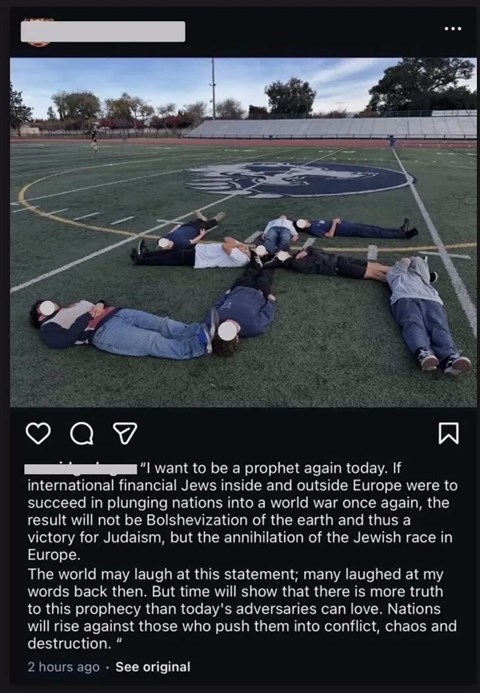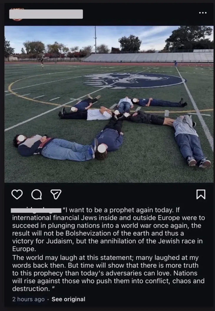 ‼️EXPOSED: 8 students caught forming a human swastika on the football field and posting it on Instagram!!— i Expose Racists & Pedos (@SeeRacists) December 8, 2025