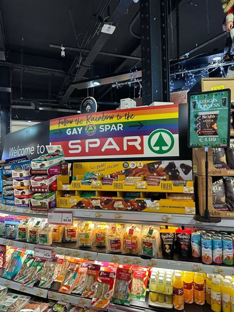 Az itt látható képet kedves olvasónk küldte be a CitizenGo Facebook-oldaláról. Noha Magyarországon még nincsen „buzi Spar” (ami késik, nem múlik), nem is nagyon szeretném megtudni, mi várja ott a vásárlót, amennyiben „követi a szivárványt”.