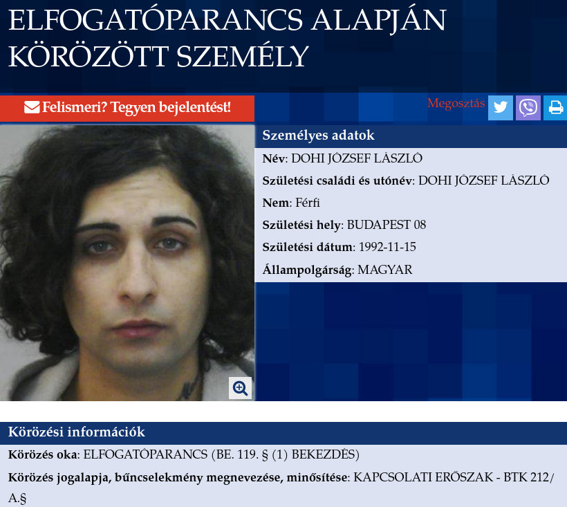 Nem világos, hogy ő a fiú-e vagy a lány, őzzel vagy egy Trabanttal él mérgező kapcsolatban, de a rendőrség 2024 júniusa óta lázasan keresi erőszakosságáért.