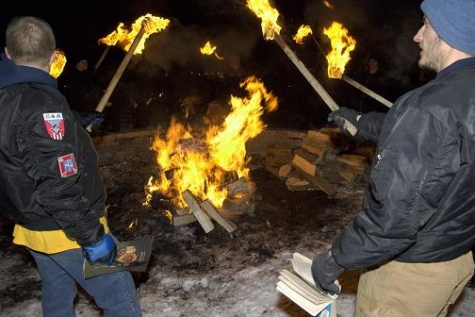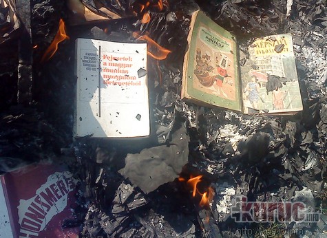 S milyen más módszer lenne a legstílusosabb, mint egy antikommunista könyvégetés? A tűz mellett kiválóan lehet beszélgetni, borozgatni, nótázgatni, ráadásul szép hagyományai is vannak ennek a múlt század közepe tájáról.