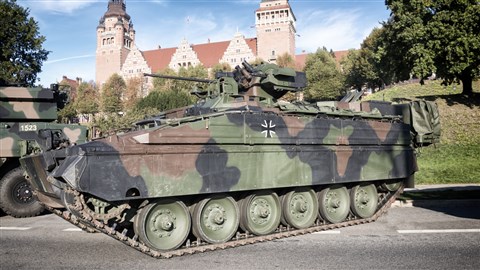 A két különálló videón az látható, ahogy egy német gyártmányú Marder páncélos 20 milliméteres gépágyúval tüzet nyit a település házaira.