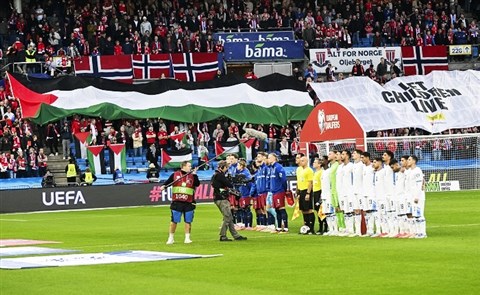 Oslóban, tegnap Izrael világbajnoki selejtezőt játszott a házigazda norvégok ellen, s annak rendje és módja szerint ki is kapott 5:0-ra. A mérkőzés előtt a norvég főváros utcáin, az Ullevaal Stadion környékén, majd a játék idején a stadion lelátóin tiltakoztak a Gázai övezetben folyó izraeli népirtás ellen, illetve követelték Izrael eltávolítását a nemzetközi mérkőzésekről. Az izraeli himnusz bejátszása alatt a szurkolók pfujoltak a lelátón – írja az asharq.com hírportál és a Jediot Aharonot honlapja.