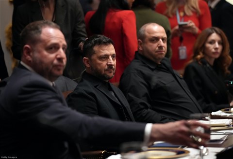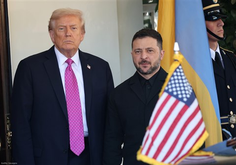 Az elnök mellett jelen van az amerikai alelnök, az amerikai külügyminiszter, a védelmi miniszter és az orosz–ukrán háború különleges amerikai megbízottja, Steve Witkoff.