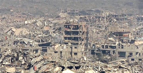Az izraeli hadsereg vendéglátását „élvezve”, szigorú felügyelet mellett John Irvine brit televíziós tudósító stábjával beléphetett a holdbéli tájra emlékeztető, lepusztított Gázai övezet északi részébe. A képek láttán még inkább egyértelművé válik az, amit eddig is egyre többen állítottak: az izraeli hadsereg nem azért hatolt be a Gázai övezetbe, hogy legyőzze, fizikailag megsemmisítse a Hamász harcosait, hanem azért is, hogy a népirtás mellett teljesen elpusztítsa a palesztinok infrastruktúráját, életterét. S akik életben maradnak, ne legyen hová visszamenniük.