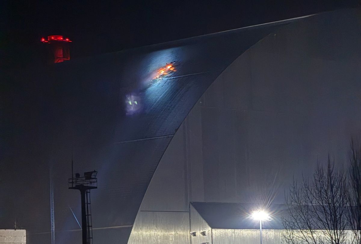 méter magas, félhenger formájú acélszarkofágot februárban érte támadás, és egy időre tűz is keletkezett.