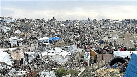 ![]() Dzsebálijá, 2025. február - visszalopakodott palesztinok sátrai a lebombázott otthonaik romjain (fotó: Dzsáber Dzsihád) |