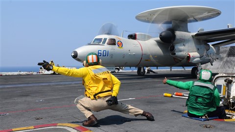 ![]() Amerikai E2-C Hawkeye elektronikus harcászati repülőgép felszállás közben (fotó: Smith Collection / Gado / Getty Images) |