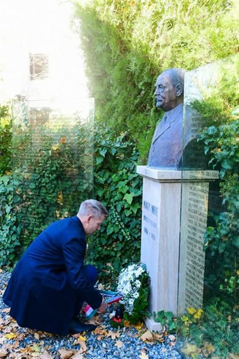 Magyar Péter azt írta, a napot a Nagy Imre Emlékházban kezdte, és a mártír miniszterelnök unokájával, Jánosi Katalinnal, valamint Rainer M. János történésszel elhelyezte az emlékezés virágait. Megható volt a kivégzett miniszterelnök utolsó szavait az egykori dolgozószobájában meghallgatni: "kegyelmet nem kérek." Tisztelet a forradalom hőseinek és áldozatainak! - zárul Magyar Péter bejegyzése.