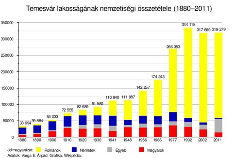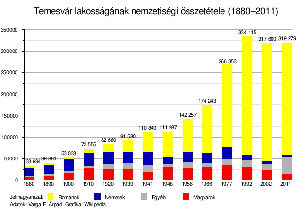 Persze Temesvár kapcsán azért érdemes annyit kiemelni, hogy 1920 előtt Magyarország, illetőleg a Monarchia része volt, de magyarok sosem éltek itt többségben, igaz, románok sem. Németek által lakott nagyváros volt (például az 1880-as népességi adatok szerint, ha összeadjuk a magyarok és románok számát, sem adják ki a németekét), mára már azonban kevesebb él belőlük ott, mint magyarból, a románok pedig elsöprő többségben vannak. 2011-hez képest is csökkent a magyarok aránya, 2021-ben már csak 3 százalék volt.