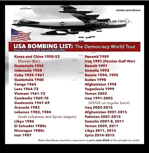 ![]() Az amerikai bombázások részleges listája - a demokrácia-világturné 1945-2015 között (kép forrása: minds.com/akana) |