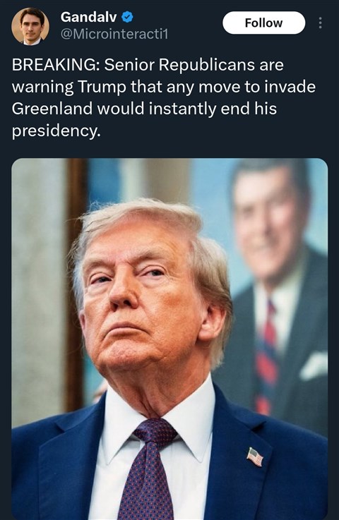 ![]() Republikánus vezetők arra figyelmeztették Trumpot, hogy bármilyen lépés Grönland elfoglalására nyomban véget vetne az elnökségének |