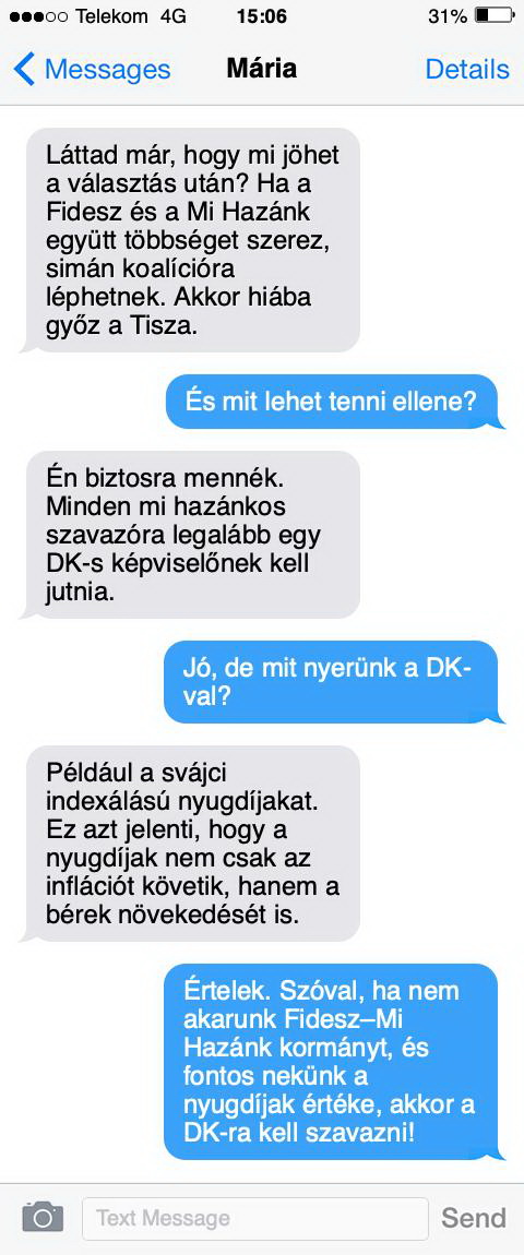 Saját létük mellett való érveik túlnyomó része nem arról szól, hogy mit tettek, és mit tehetnek saját erejükből, létalapjukat a Mi Hazánk ekézése, jobban mondva a párttal való ijesztgetés meríti ki. Persze itt is megjelenik a Mi Hazánk és a Fidesz közötti kollaboráció vizionálása, de aki szerint azért van magára szükség, hogy mindezt ellensúlyozza, az politikai értelemben hallott, márpedig a DK részéről ez az egyetlen fő üzenet maradt talpon másfél héttel a választások előtt.