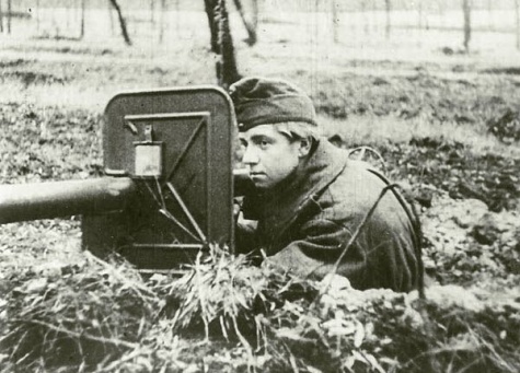 ![]() Magyar kiskatona a „Páncélrémmel” 1944-ben |