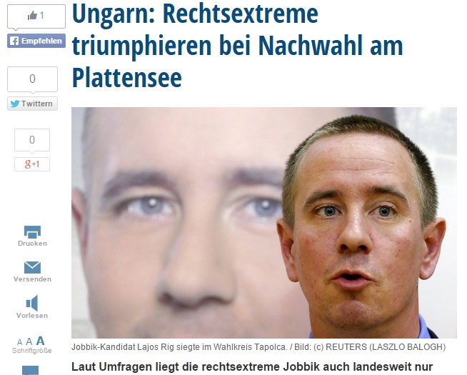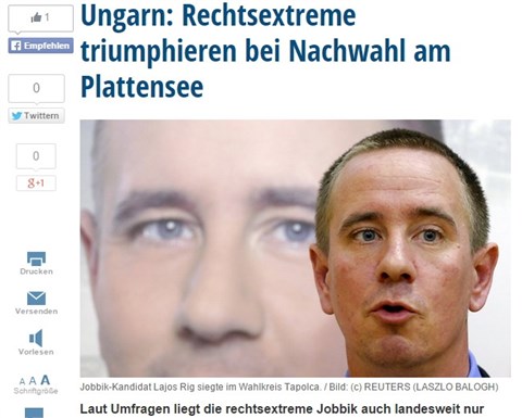 A Die Welt az online kiadásában A jobboldali Jobbik párt ellopja Orbántól a szavazókat címmel közölte Boris Kálnoky írását, amely szerint "Magyarország rasszista és Európa-ellenes csoportosulása befurakodik a társadalom közepébe", és "új taktikát" alkalmazva megnyer egy "fontos" időközi választást, ami "elsősorban Orbán Fideszének fáj".