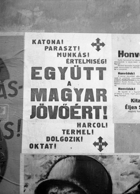 Munkásvédelemről szavalnak az árulókÁtszivárgott hozzánk a hír, hogy Debrecenben megalakult a második bolsevista kormány. Arról is hallottunk, hogy pontokba foglalta célkitűzéseit, összehívta az általa kinevezett felsőház és a képviselőház tagjaiból a nemzetgyűlést és máris megkezdte ezerkilencszáztizenkilencre emlékeztető »áldásos« tevékenységét.Minket, magyar dolgozókat, a bárgyúságok és ostobaságok e dús programmjából csak egy érdekel: a munkásvédelem. Nagyon is közeli még az a mult, amelyben rendjel-rekordereink, akik egyébként a hazaárulásból is csúcseredményt értek el, bebizonyíthatták volna, hogy miként értelmezik a munkásvédelmet. A gyára kukacok vörös lampasszos díszpéldányai, a sikkasztó közjogi méltóságok agyon érdemrendezett aggastyánjai, chikágói gengsztereket is megszégyenítő aljassággal árulták el minden magyar legszentebbjét, a Hazát.Azt hiszik ezek a becsületből százszor kivetkőzött bitangok, hogy a magyar dolgozóknak még mindig nem nyílt ki a szeme. Azt hiszik, hogy a magyar munkás még mindig olyan ostoba, amilyennek ők neveltek évtizedek heje-hujás, hosszú során. Módjukban volt bebizonyítani, hogy munkásvédelmet akarunk, hiszen dagadtra híztak a gyárakban elhullott verejték oly búsás osztalékot hozó keservein. Ők időzítették a nyomort a kültelken, a falatka kenyeret az asztalon, a garas-órabért a műhelyekben. Ők szolgáltatták ki a munkást a féktelen zsidó mohóságnak, a jövendő magyar anyáit a pinceműhelyek élvhajhászó galíciánereinek. Ők rendszeresítették a heti hatpengős fizetést, miközben lillafüredi dáridókat rendeztek és kormányfőtanácsost csináltak a magyar családok tömegsírásóiból.És most ezek a talmudi emlőkön nevelkedettek, a nemzeti érzés lepénzelt partizánjai, ezek akarnak munkásvédelmet csinálni ott, ahol huszonöt évig egyebet sem tettek, mint rúgtak egyet a kenyeret kérőn. Ha egy munkás több bért kért, nagyobb falatot, egyszeriben úgy lekommunistázták, hogy alig állt a lábán. És most éppen ők üvöltöznek jó viszonyról hatalmas Szovjet-Unióval.De a magyar munkás tetemre hívja őket a koránvénült kültelki élethez. A magyar munkás felveti a felelősség kérdését. A magyar munkás elhárítja magáról azoknak a védelmét, akik méltatlanok még a golyóra is, akik meggyalázták a magyar történelem dicsőséges lapjait.A becstelenség e veszedelmes bacillusai jól tennék, ha békében hagynák a dolgozókat, akik munkásvédelmet csak a nemzetiszocializmustól várnak és annak magyar vetületétől, a Hungarizmustól Elég volt a szoba-konyhák penészvilágából, a kozmopolita irodalomból és művészetből. Magyarul akarunk végre élni és ezt nem várhatjuk azoktól, akik százszor inkább voltak kötélrevaló zsiványok, mint magyarok.Ez a magyar munkás válasza azok felé az aljasok felé, akik sárbatapasztották a sorsát addig is, amíg szembe nem nézhet velük és megvetésének öklével nem adhat kifejezést.