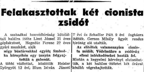 Felakasztottak két cionista zsidót