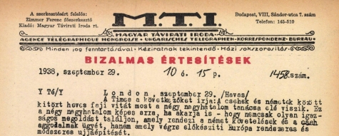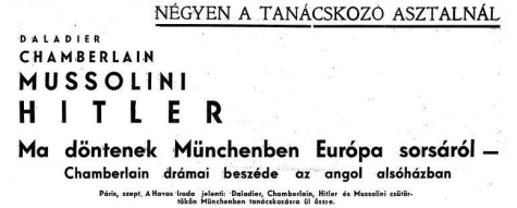 Berlin, szeptember 28. Német TI. Hitler vezér és kancellár megbeszélésre hívta meg Mussolini olasz, Chamberlain angol, valamint Daladier francia miniszterelnököket. Az államférfiak elfogadták a meghívást. A megbeszélés szeptember 29-én délelőtt lesz Münchenben.