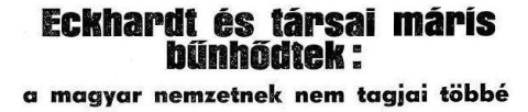 A megtorlás már meg is történt. A kormány erélyes keze a tételes törvények alapján egy tollvonással törölte Eckhardtot és társait a magyar nemzet tagjainak sorából.