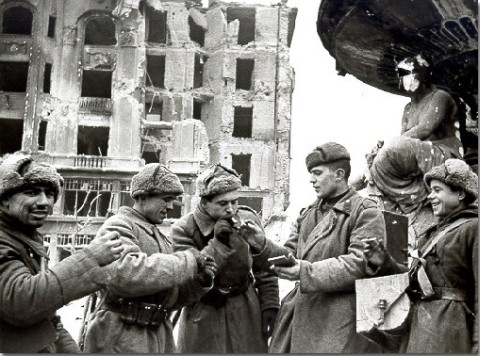 ![]() Szovjet „katonák” a Kálvin téren - 1945 |