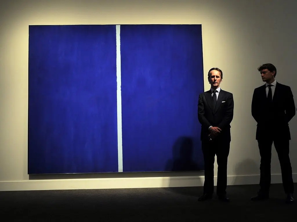 ![]() Barnett Newman 1953-as Onement VI című, tipikus jellegű alkotása 2013-ban 43.8 millió dollárért (14,7 milliárd forintért) kelt el (forrás: nytimes.com) |