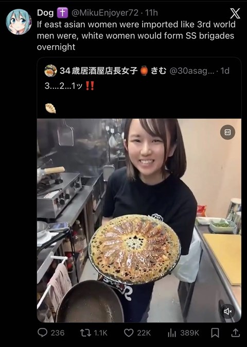![]() Ha a kelet-ázsiai nőket úgy importálnák, mint a harmadik világbeli férfiakat, a fehér nők hirtelen SS-brigádokat alakítanának |