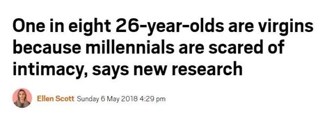 ![]() A 26 éves amerikaiak közül minden nyolcadik szűz, mert a korosztálybeliek félnek az intimitástól. A fiatalabbak még náluk is ijedősebbek |